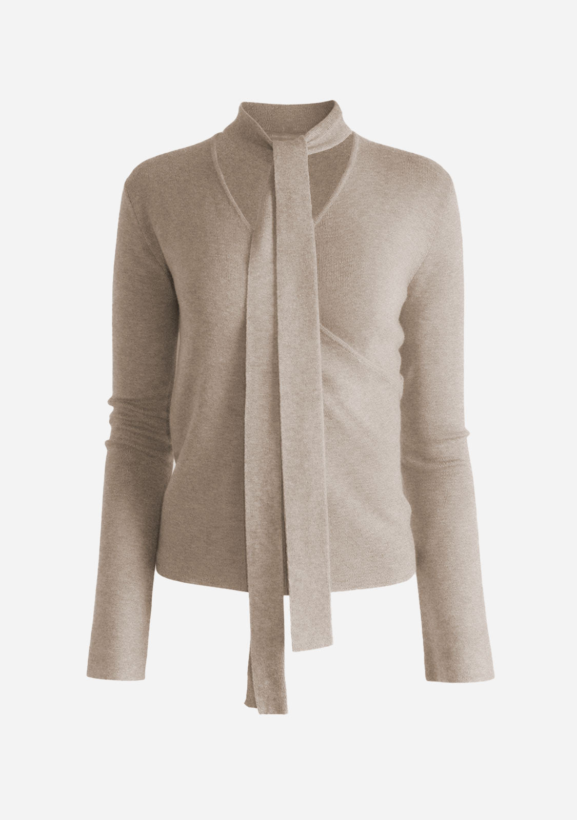 Ruffle Front Long Sleeve Blouse Beige