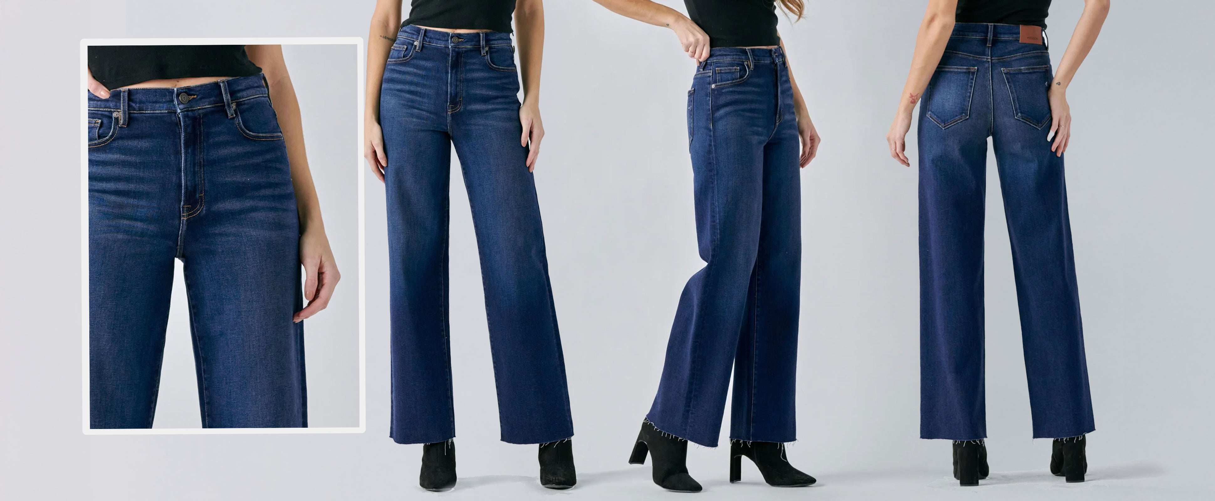 High Rise Wide Leg Jean with Belt Denim Blue